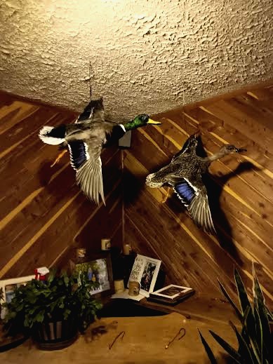 Drake And Hen Mallard Flying Together Hanging From The Celing.